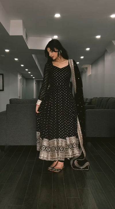 Regal Heavy Georgette Fully Stitched Anarkali Gown with Embroidered Dupatta – Festival & Party Wear