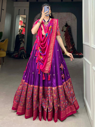 Royal Purple Tussar Silk Printed & Foil Work Lehenga Choli with Dupatta