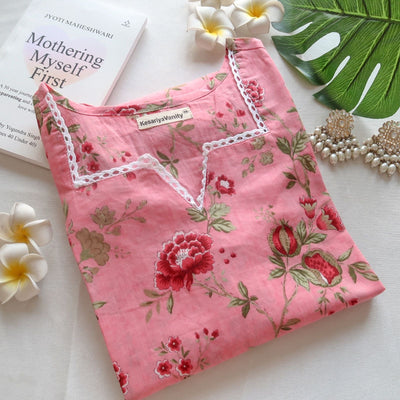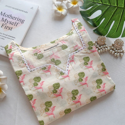 Cotton Straight Kurta Pant Set with Floral Print and Lace Detailing