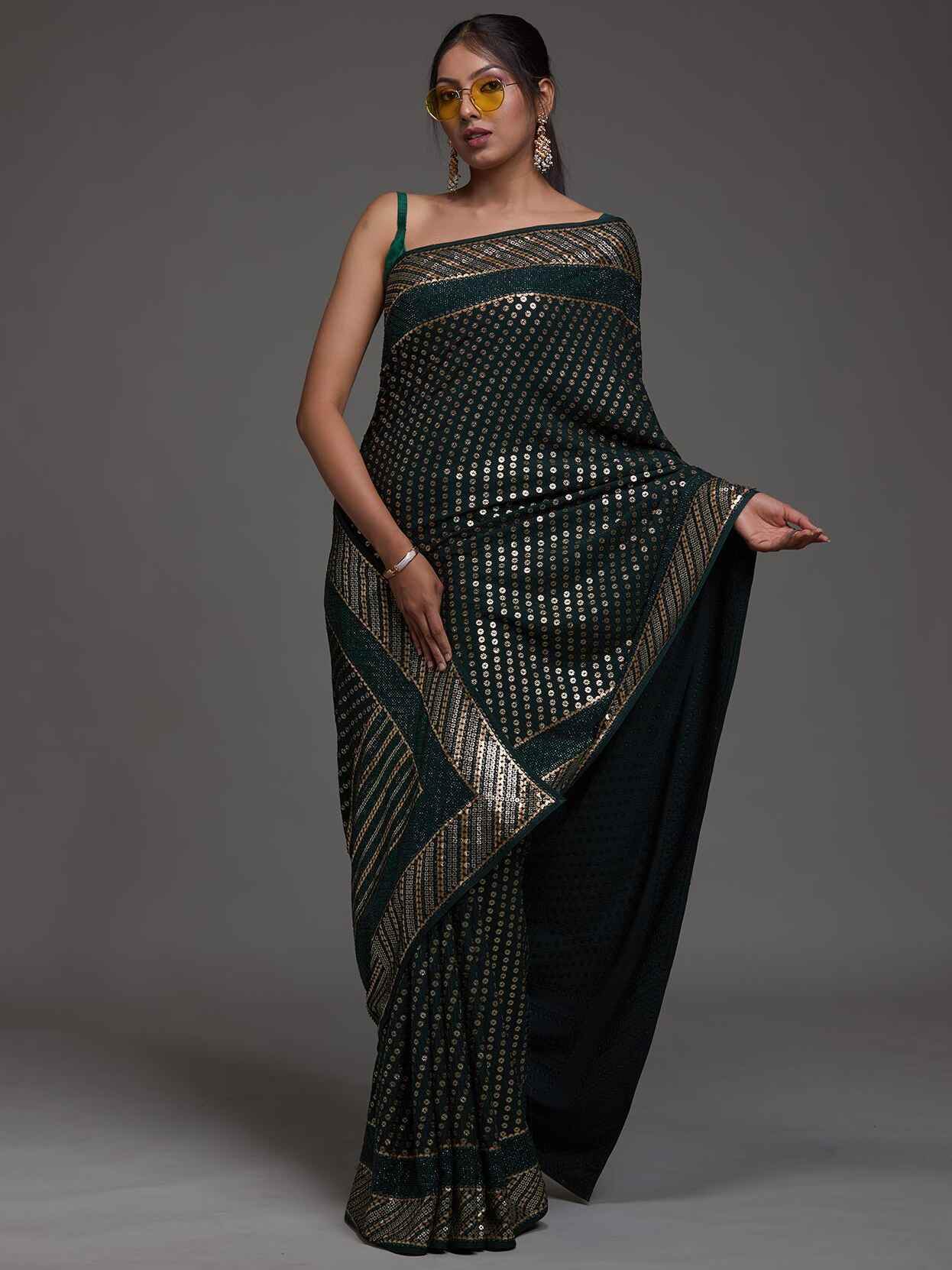 Alluring Green Sequins Georgette Reception Wear Saree With Blouse