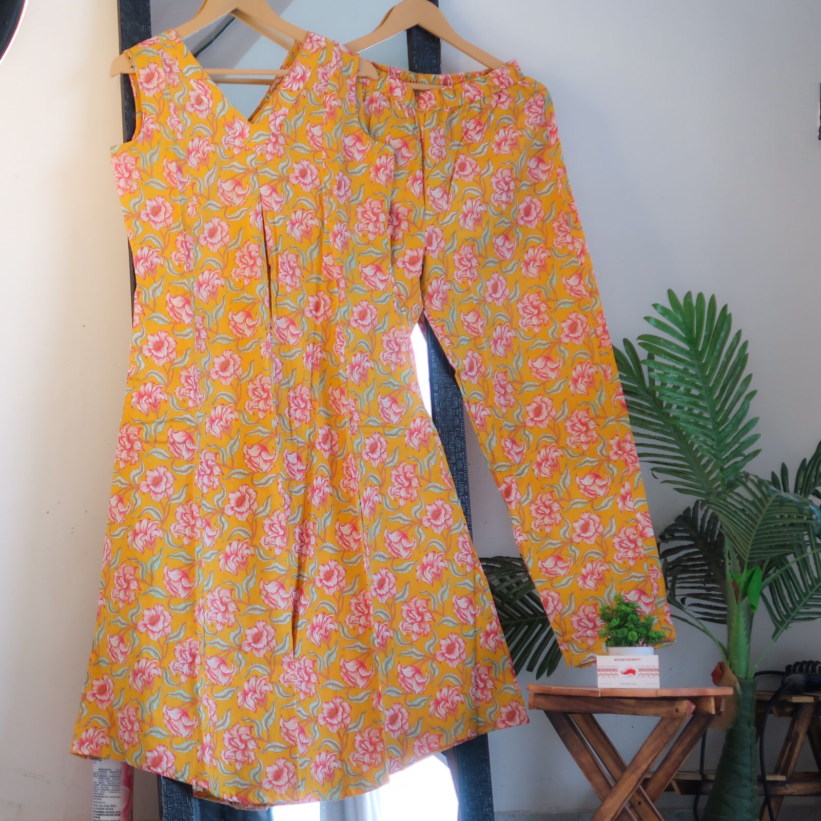 Elevate your everyday style with our Comforter Suit Set 3.0, featuring a stunning honey yellow A-line kurta with a flattering V-neck and sleeveless design. Adorned with delicate pink floral prints, this set effortlessly blends elegance with ease, making it a perfect choice for both office and casual outings.