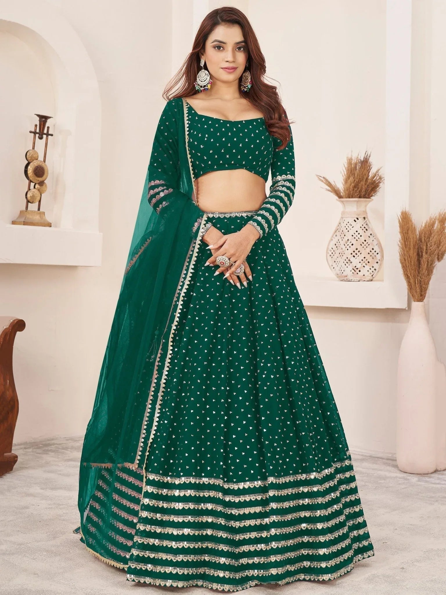 Introducing a stunning green lehenga choli set, crafted to radiate sophistication and timeless elegance. Perfect for weddings, receptions, and festive celebrations, this ensemble is designed to make every occasion truly memorable.