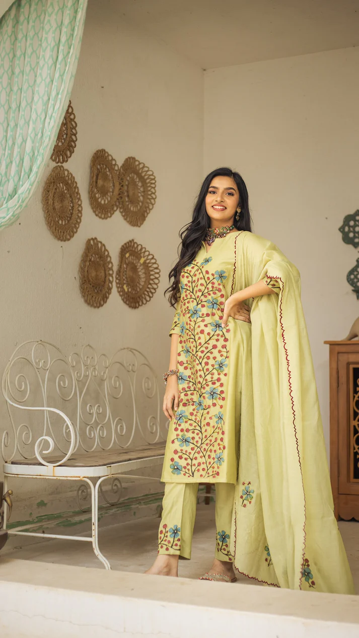Kalamkari Cotton Kurta Set  Floral Design with Coordinated Dupatta