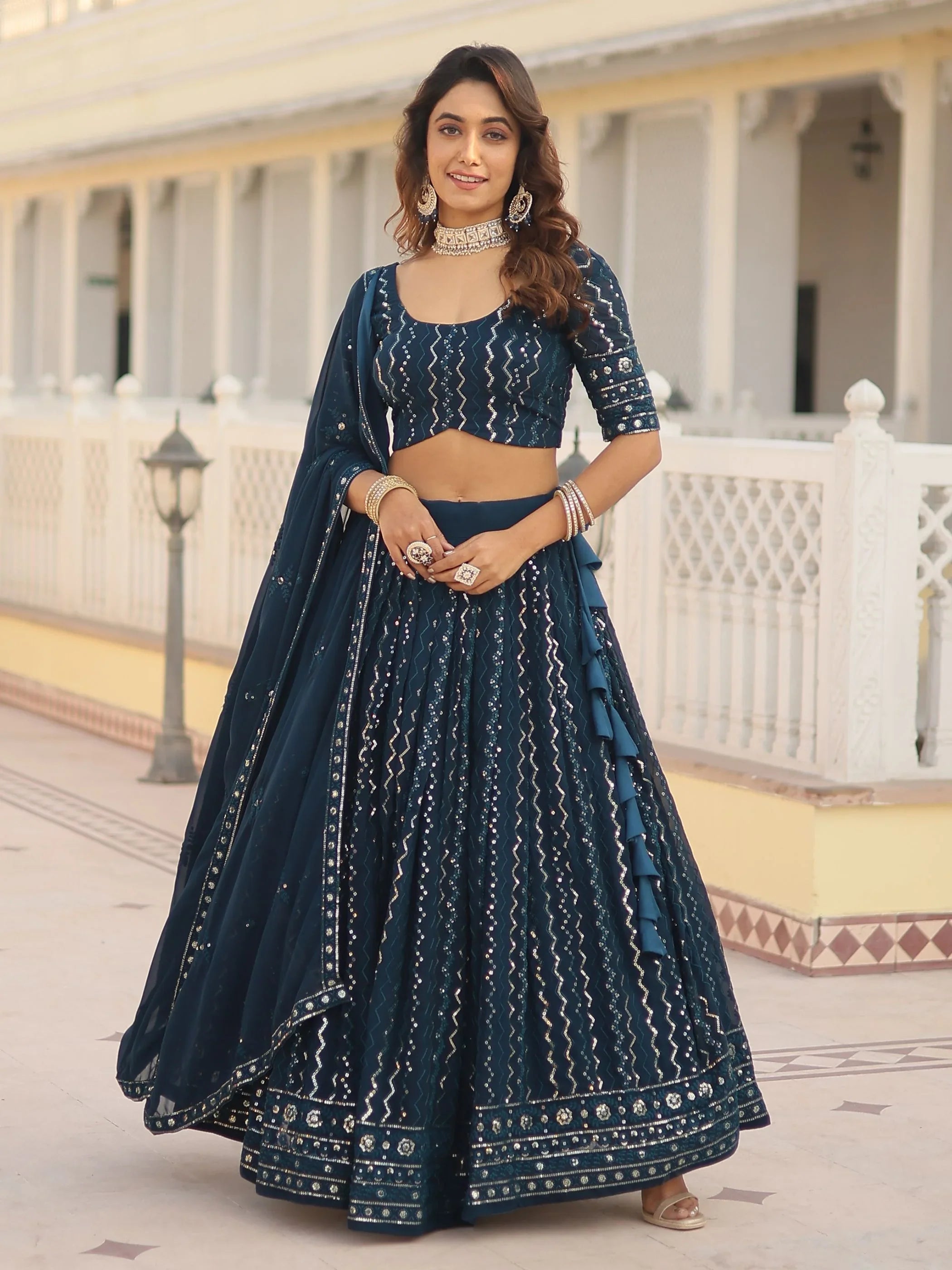 Introducing our stunning adorable navy blue sequins georgette sangeet wear lehenga choli, designed to make you shine at weddings, festivals, and special occasions.