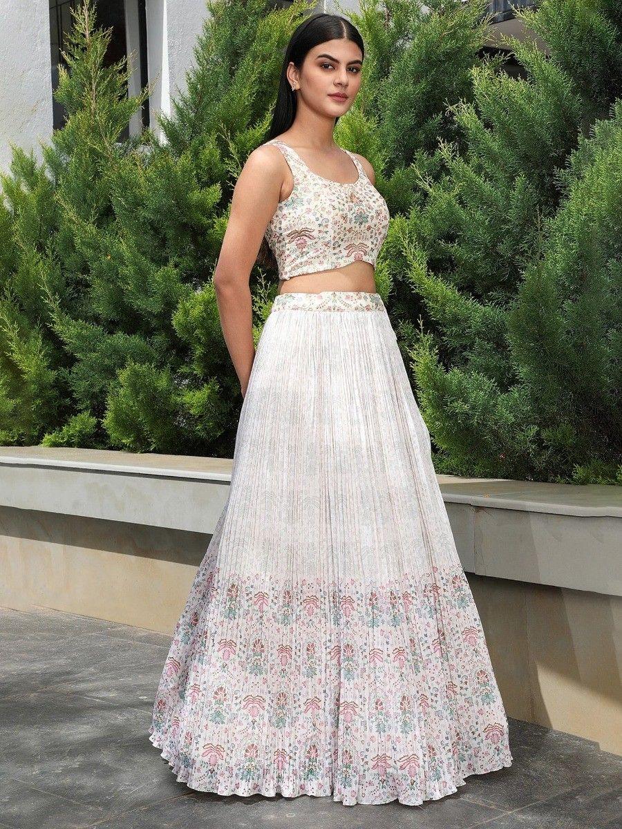 Elevate your festive wardrobe with this Precious Off-White Digital Printed Georgette Lehenga Choli, a masterpiece of elegance and contemporary charm.