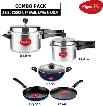 - Pressure cookers 3ltr and 5 ltr::1 tawa::1 frypan::1 kadhai::1 glass lid