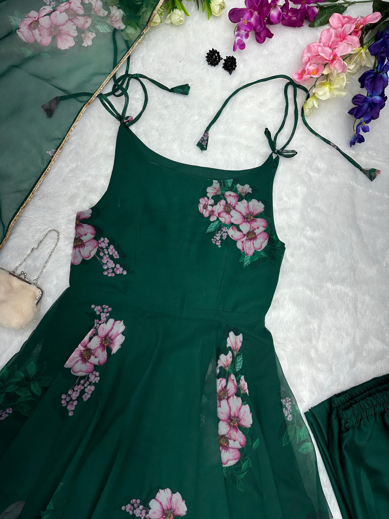 Elevate your ethnic wardrobe with our Pure Georgette Silk Digital Printed Anarkali Suit, crafted with a huge flair and delicate lace border for a regal look. The vibrant digital prints enhance the elegance, making it a perfect choice for parties, festive events, and functions.