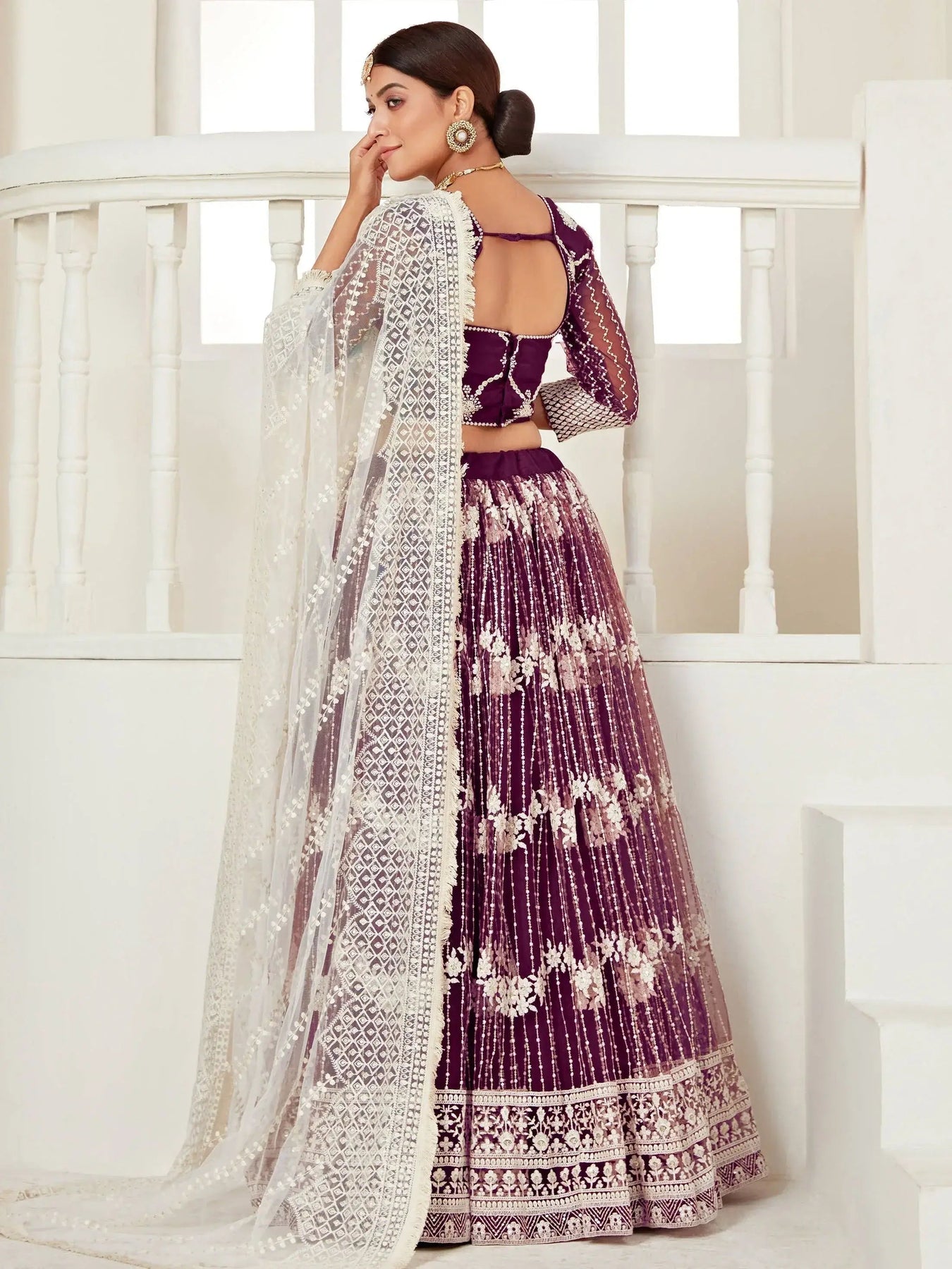 Let your elegance shine with our Wine Color Heavy Net Embroidered Lehenga Choli, a captivating ensemble that ensures compliments wherever you go.